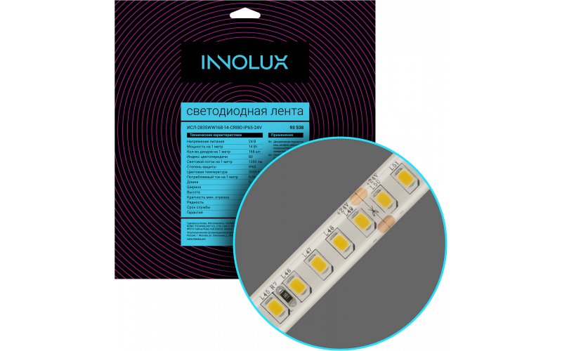Лента светодиодная 24В 93 538 ИСЛ-2835WW168-14-CRI80-IP65-24V | 93538 | INNOLUX