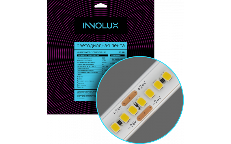 Лента светодиодная 24В 93 551 ИСЛ-2835W238-17-CRI80-IP67-24V | 93551 | INNOLUX