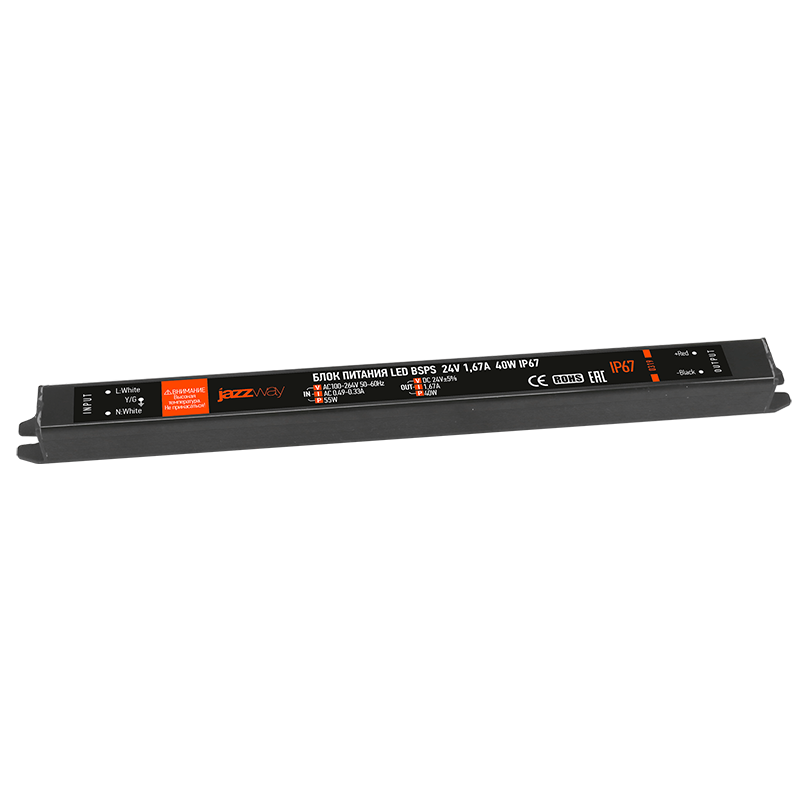 Драйвер для светодиодной ленты LED BSPS 24V 1,67A=40W IP67 3 г.гар. | .5018495 | Jazzway