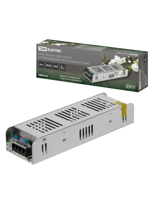 Блок питания 250Вт-24В-IP20 для светодиодных лент и модулей, металл, узкий, | SQ0331-0561 | TDM