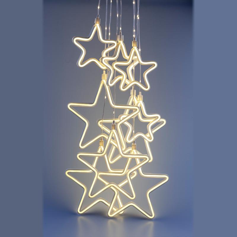 Гирлянда занавес Неоновые звезды, теплый белый, 2,4 м* 08 м, ЕGNIG - ST , 220 V, 8 режимов, длина провода 1,5 м, IP2 | Б0051877 | ЭРА