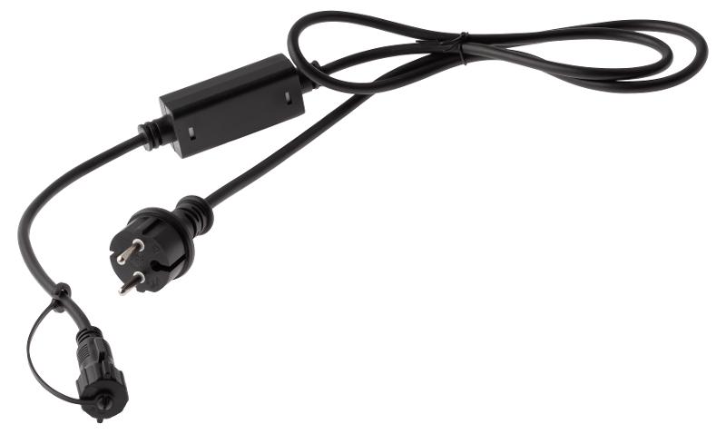 Шнур питания с вилкой 3А, 450Вт, 220В для подключения уличных гирлянд - ЭРА ERAPS-K450. Изготовлен из высококачественного каучука - морозостойкого, устойчивого к перепадам температур и воздействию осадков материала. Длина шнура - 1,5 метра, цвет - черный. Шнур уличный для новогодних гирлянд надежно защищен от влаги и пыли (международный класс защиты IP65), имеется заглушка для герметичности. С помощью данного электрического аксессуара можно подключать мощные уличные гирлянды к стандартной электросети. Шнур питания с вилкой ЭРА ERAPS-K450 применяется для организации праздничной подсветки коттеджей, загородных домов, дач, муниципальных и коммерческих объектов, городских улиц, парков, площадей.