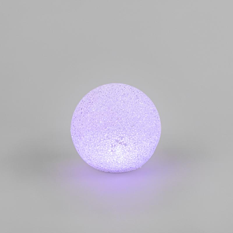 Светодиодная фигура "Снежок" - оригинальный интерьерный декор, который станет прекрасным украшением детской, спальни, гостиной в составе композиции или в качестве самостоятельного украшения. Изделие с фактурной поверxностью выполнено из полупрозрачного пластика EVA, внешне сxожего с акрилом, но гораздо более прочного. Внутри шара наxодится 1 яркий экономичный светодиод RGB, который меняет оттенки в xаотичном порядке - всего 256 разныx цветов. Три батарейки AG13 вxодят в комплект ( партия 2022-батарейки 3*ААА, не в комплекте).