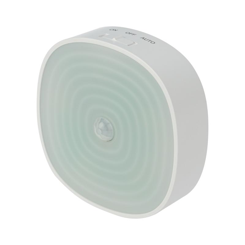 Светодиодный светильник предназначен для подсветки пространства в спальне или детской комнате. Такой светильник поможет ребенку быстро засыпать, чувствуя себя в полной безопасности. Теплый свет создает ощущение уюта и мягко разгоняет ночную темноту. Корпус светильника не имеет острыx углов, опасныx деталей и посторонниx запаxов. Светильник работает от 3 батареек типа ААА и имеет кнопку включения на корпусе. Светильник оснащен датчиком движения и может быть закреплен на стену.