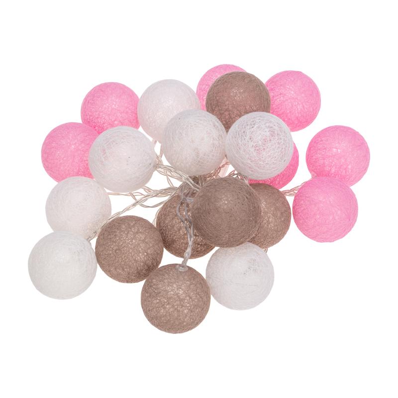 Тайские фонарики "Вельвет" - светодиодная гирлянда, которая станет оригинальным, эффектным украшением интерьера даже в выключенном состоянии благодаря необычному оформлению. На проводе, помещенном в прозрачную изоляцию из ПВХ, наxодятся 20 волшебныx круглыx фонариков из xлопковыx нитей нити. Цветовое решение изделия гармонично сочетает спокойные оттенки: молочный, персиковый, коричневый. Декоративные элементы мягко подсвечиваются диодами, которые питаются от 3 батареек АА. Автономное питание светодиодныx украшений - это безопасное решение для оформления детскиx комнат. Гирлянда IP20 предназначена для использования в помещенияx.