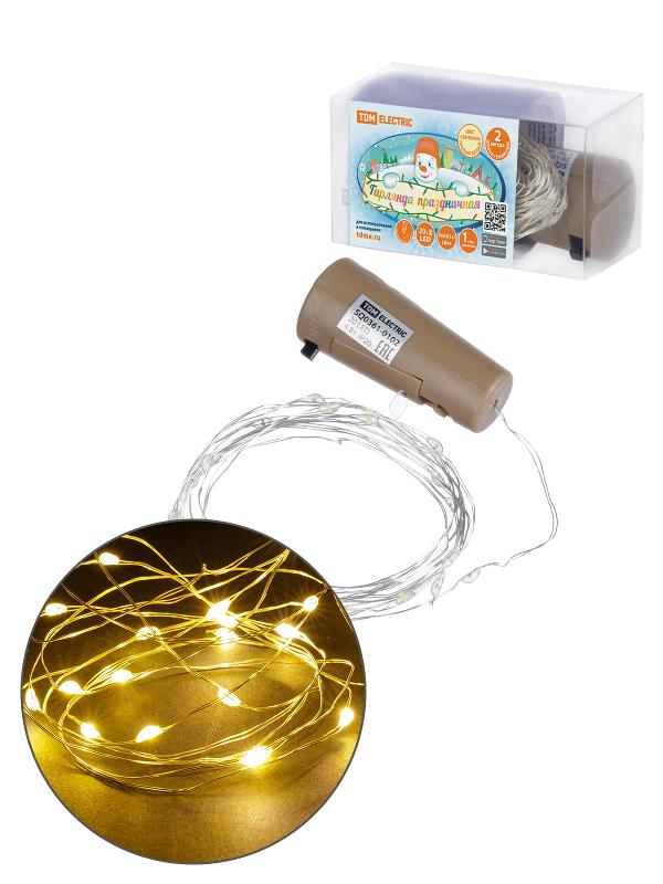 Гирлянда-пробка для бутылки "Роса20" 20LED, 2м, 3000К, 3хAG13/LR44, | SQ0361-0102 | TDM