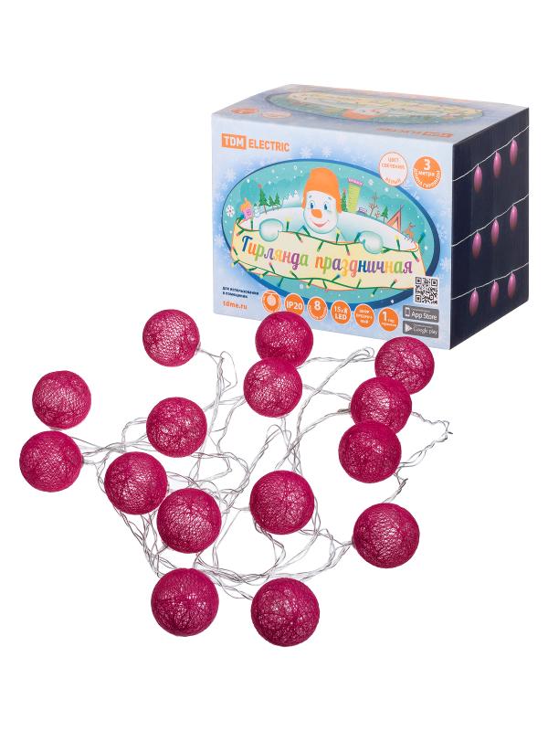 Гирлянда светодиодная "Клубочки" 3 м, 15LED, белый, 8 режимов, 250В, IP20, | SQ0361-0094 | TDM