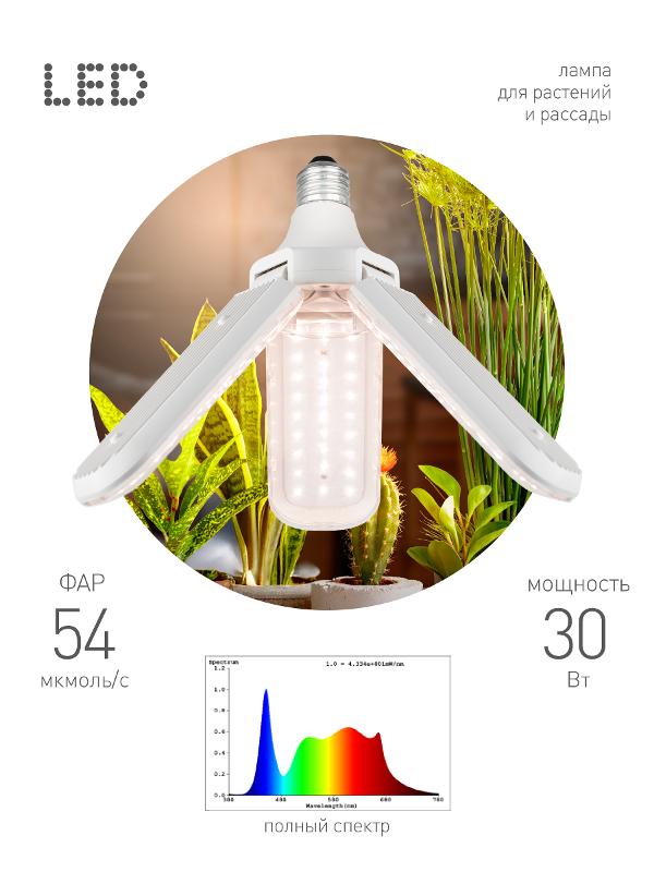 Фитолампа для растений светодиодная GREEN LINE ФИТО-30W-PFR-E27-GR 3-х лепестковая полного спектра 30 Вт Е27 | Б0064518 | ЭРА