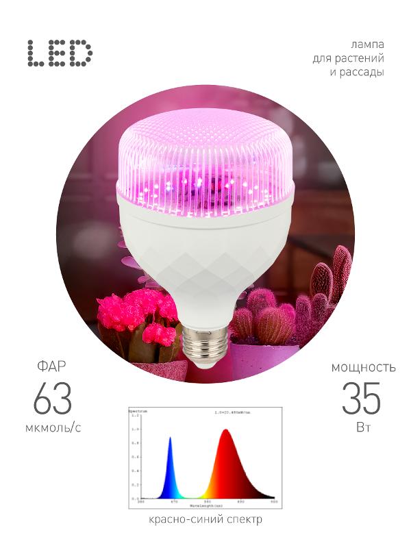 Фитолампа для растений светодиодная GREEN LINE ФИТО-35W-PL-E27-GR красно-синего спектра 35 Вт Е27 | Б0064580 | ЭРА