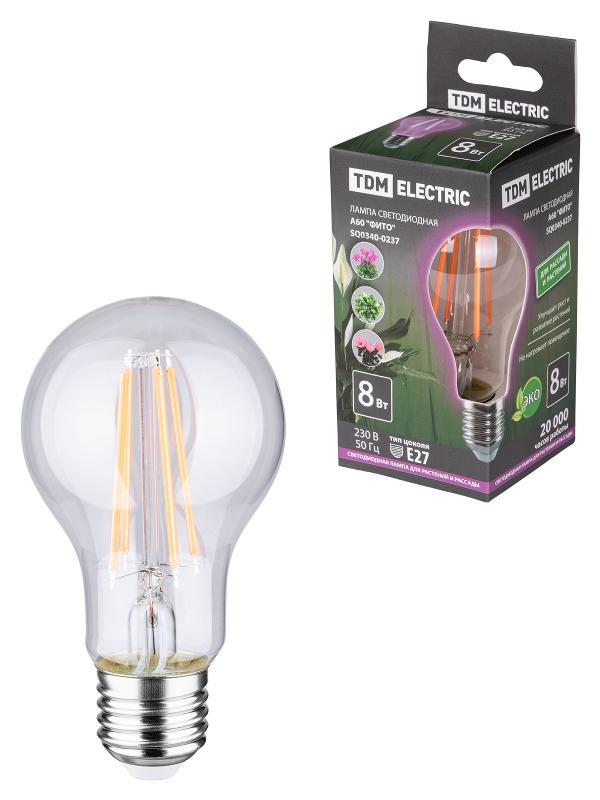 Лампа светодиодная для растений A60-8 Вт-230 В-E27-CL "ФИТО" 60*108 мм | SQ0340-0237 | TDM