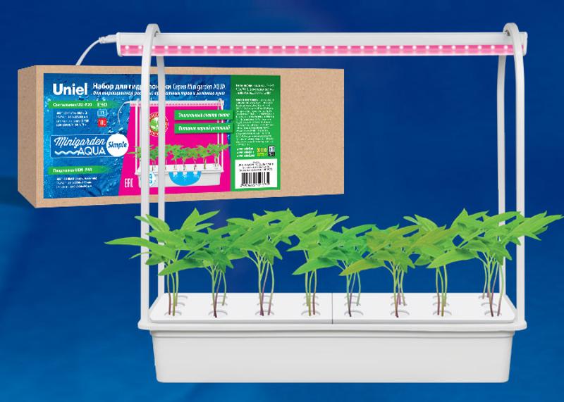 Набор для гидропоники "Минисад AQUA SIMPLE", св-к LED, ULT-P44B-10W/SPSB IP40 AQUA SIMPLE WHITE спектр для рассады и цвет, белый | UL-00004498 | Uniel