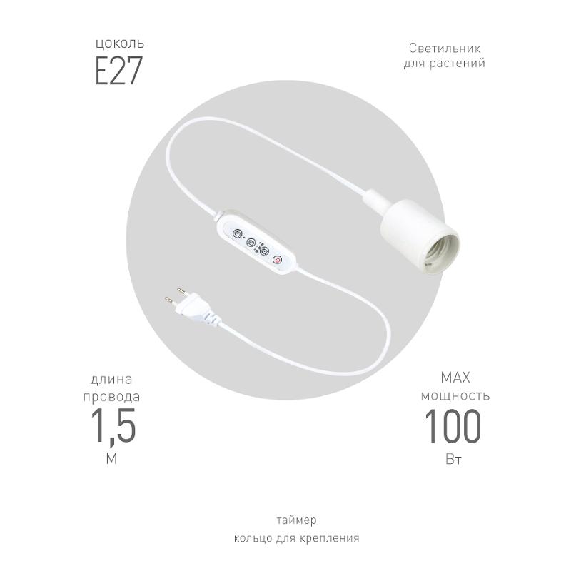Светильник для растений FITO-Time Holder E27 с проводом и таймером для фитоламп с цоколем Е27 | Б0059882 | ЭРА