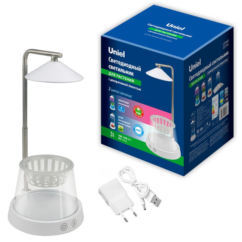 Светильник-подставка светодиодный для растений с таймером декор емк 4000К ULT-P36-3W/4000K+SPSB IP40 WHITE cпектр для рассады | UL-00004137 | Uniel