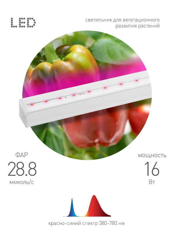 Светильник светодиодный для растений красно-синий спектр ЭРА FITO-16W-Т5-N | Б0045233 | ЭРА